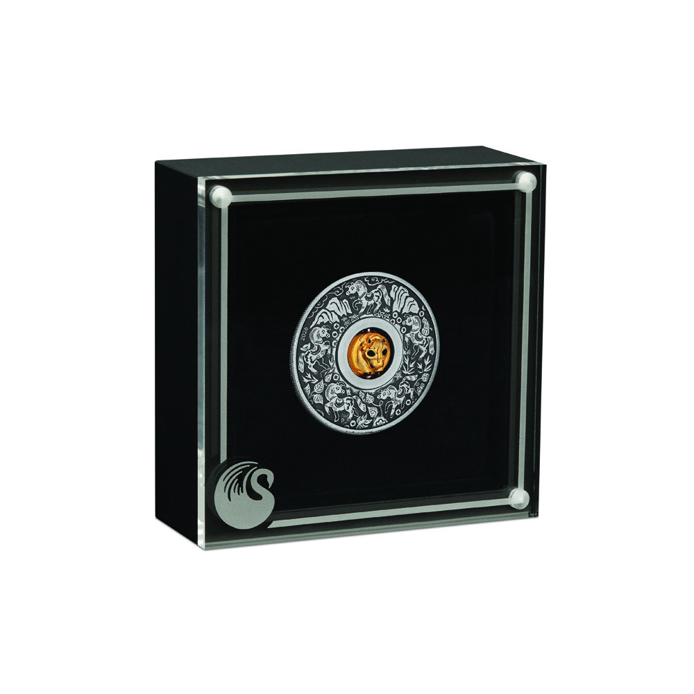 The coin comes with a numbered certificate of authenticity in a classic black display case with a transparent lid and stylish packaging.