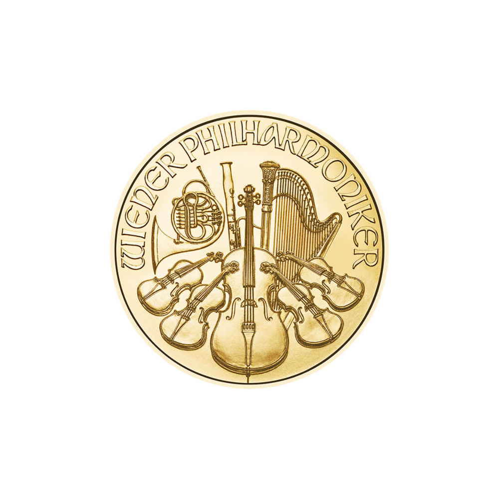 The Vienna Philharmonic owes its name to the famous Austrian orchestra, which is one of the best in the world. The front of the gold coin depicts the great organ of the Vienna Musikverein. Below the organ is stamped the weight of 1 ounce, the fineness of 999.9, the year of mintage and the face value of 100 EURO. The inscription "REPUPLIK ÖSTERREICH" is stamped above it. On the reverse side, some of the musical instruments of the Philharmonic Orchestra are depicted and on the upper edge you can see the name of the orchestra and the gold coin "WIENER PHILHAMRONIKER". Like the above gold coins, the Vienna Philharmonic is available in 1/2oz, 1/4oz, 1/10oz and 1/25oz sizes.