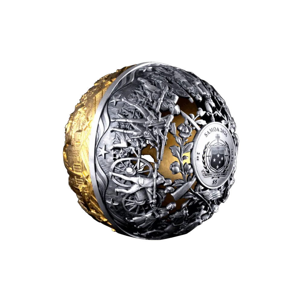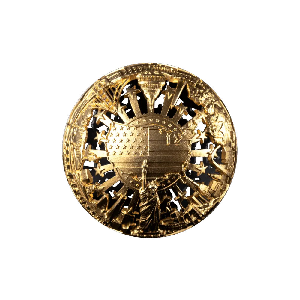 Šī neparastā 2 unču sudraba monēta iemieso spriedzi starp revolūciju un brīvību. Divi spēki, kas apvienojušies Amerikas asinīs. Revolūcija kā izaicinošs sauciens pret svešzemju kundzību. Vēsturē iegravētas kaujas. Katrs trieciens pulsē ar pašnoteikšanos. Katra uzvara ir solis pretī jaunai rītausmai. Brīvība kā dzīva liesma. Simboli, kas dzimuši no šīs cīņas: Brīvības statuja, kas pacēla savu lāpu, Holivudas zīme, kas spīd virs sapņiem, Golden Gate Bridge, kas karājas gaismā, Empire State Building, kas paceļas debesīs. Visi iemūžināti sudrabā. Ar antīko apdari. Pārklāts ar 24k zeltu. Ar filigrānu, kas ir tik smalks kā elpa. Monēta ir ievietota futrālī ar autentiskuma sertifikātu. Ierobežots 1 776 eksemplāru skaits visā pasaulē.