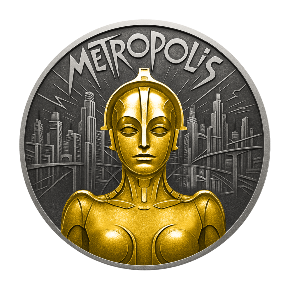 Ikoniska monēta, kas veidota, iedvesmojoties no Friča Langa šedevra. Ikoniskais Marijas tēls un ģeometriskā nākotnes pilsēta ir attēlota uz 1 unces 999. raudzes sudraba monētas ar antīko apdari un daļēju apzeltījumu, kas izdota stingri ierobežotā 500 eksemplāru tirāžā.